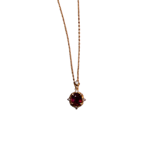 Add a touch of timeless elegance with this 18K gold ruby necklace. Featuring a deep red natural ruby gemstone, this piece exudes sophistication and vintage charm. Perfect for special occasions or elevating your everyday look, its refined design combines luxury with understated glamour.